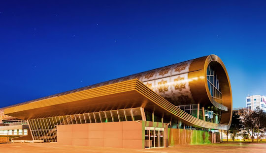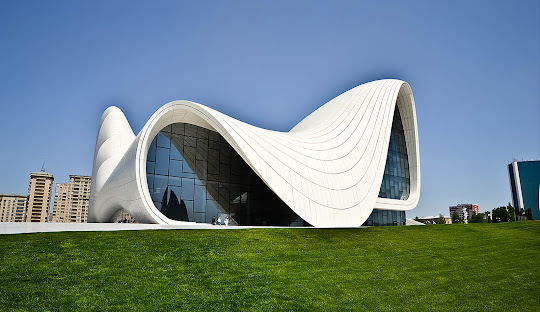 Architectural masterpiece designed by Zaha Hadid symbolizing modern Azerbaijan.